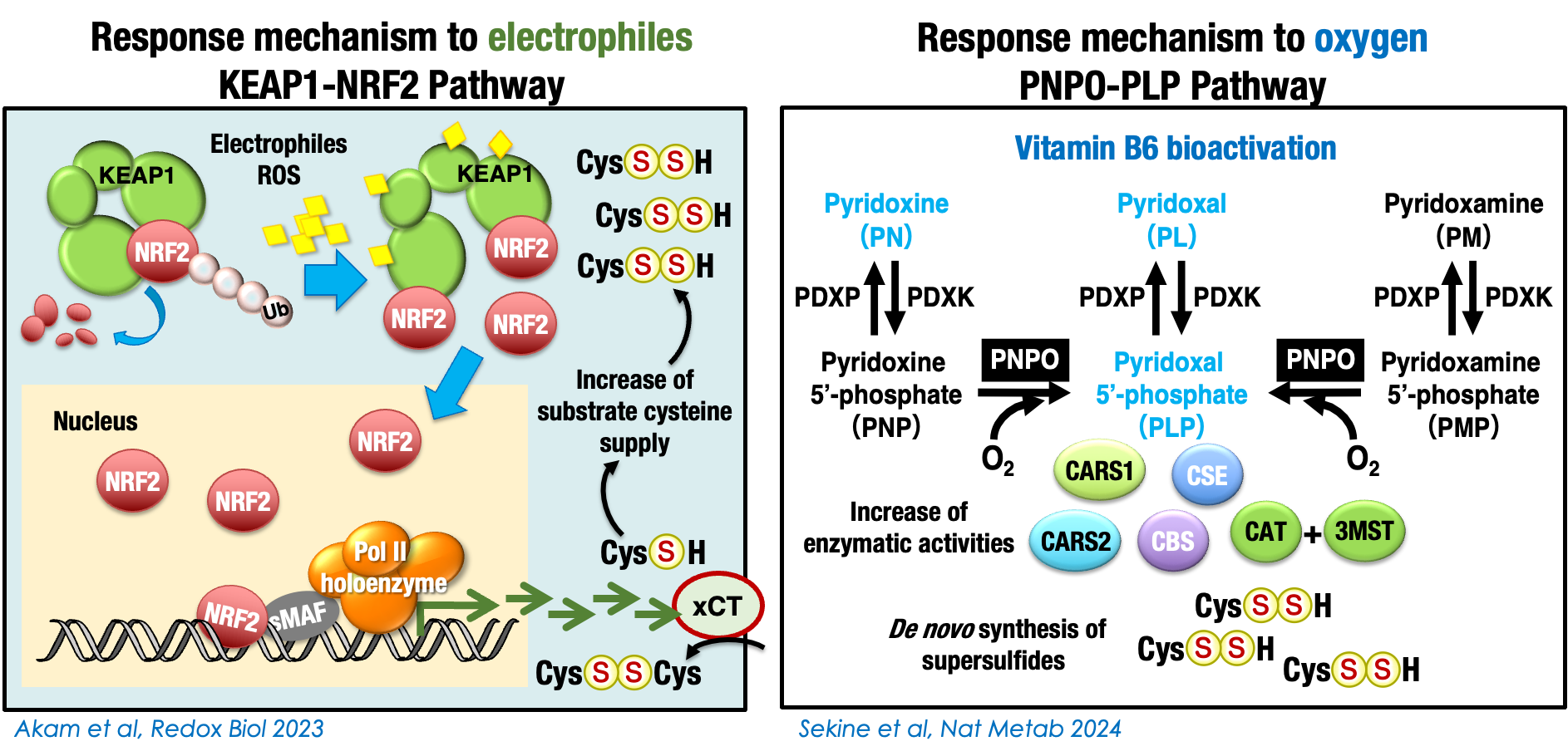 2. Sekine H, Akaike T, Motohashi H. Oxygen needs sulfur, sulfur needs oxygen: a relationship of interdependence. EMBO J. 2025 Jun;44(12):3307-3326. doi: 10.1038/s44318-025-00464-7.