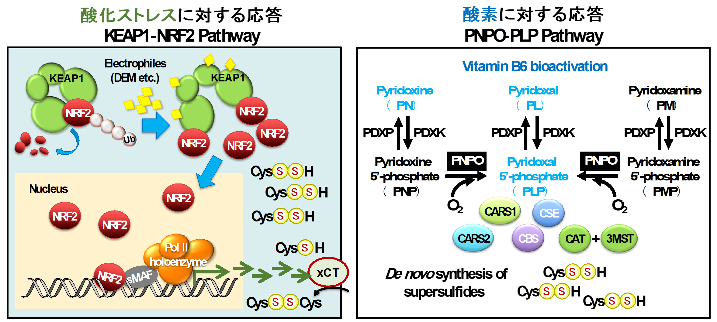 硫黄代謝、KEAP1-NRF2経路、PNPO-PLP経路、酸化ストレス、還元ストレス